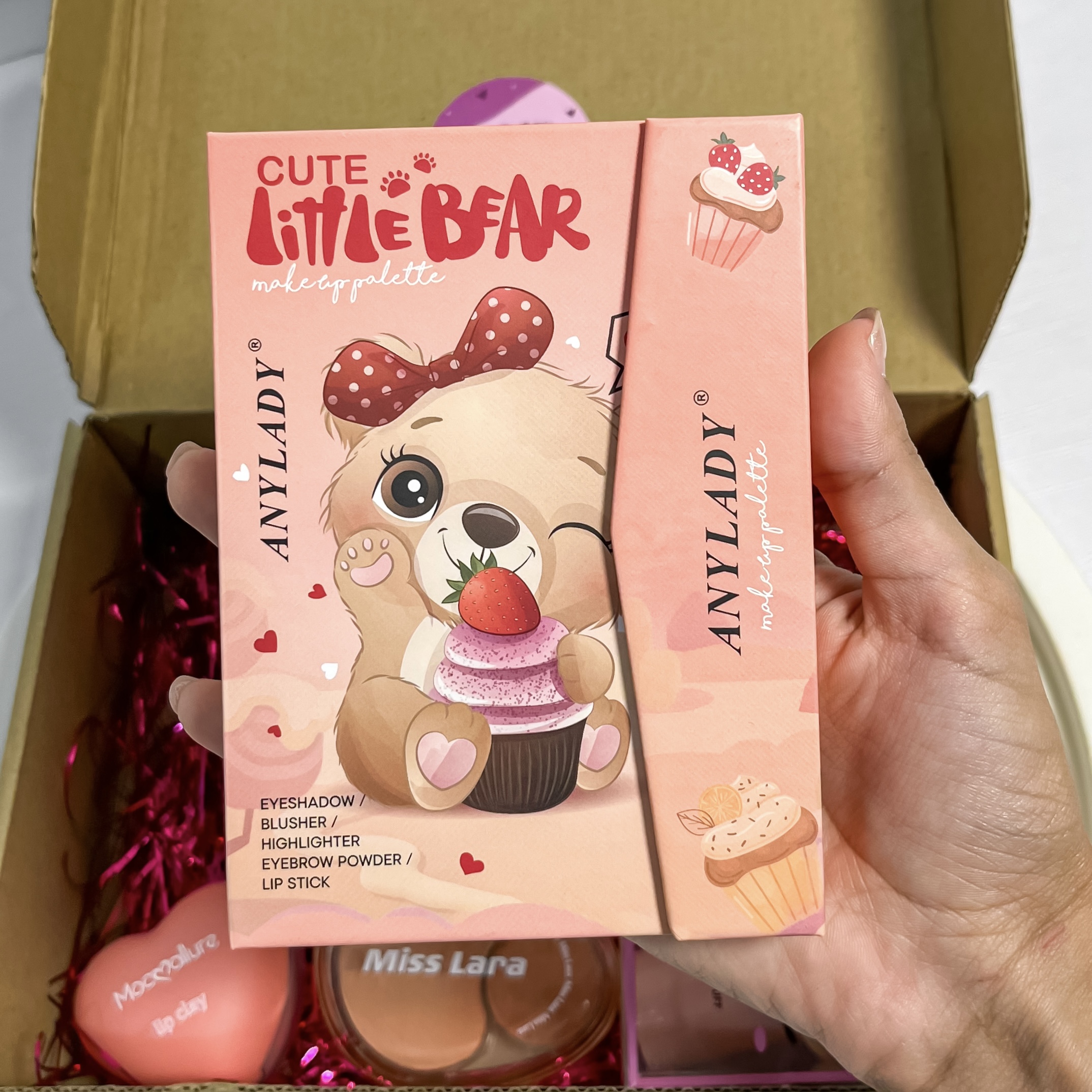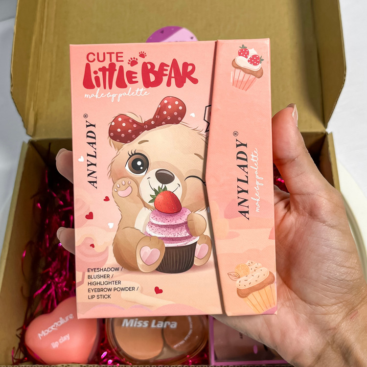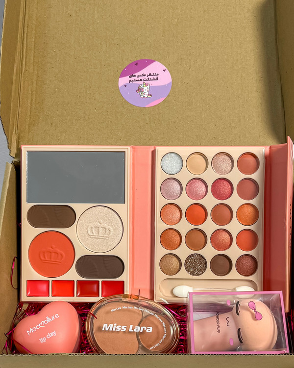 محتویات باکس: پالت سایه چندکاره خرسی (سایه ، رژلب ، هایلایتر ، کانتور ، رژگونه) ، رژگونه خمیری میس لارا ، رژلب موکالر ، بلندر قارچی