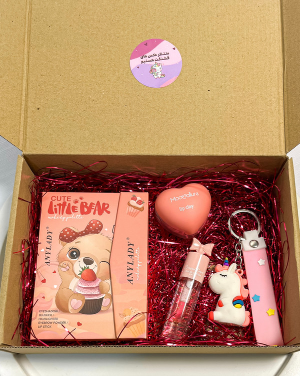محتویات باکس: پالت سایه خرسی (سایه چشم ، هایلایتر ، رژگونه ، رژلب ، کانتور) ، رژلب و رژگونه موکالر ، لیپ اویل حرارتی دراگون ، جاکلیدی فانتزی